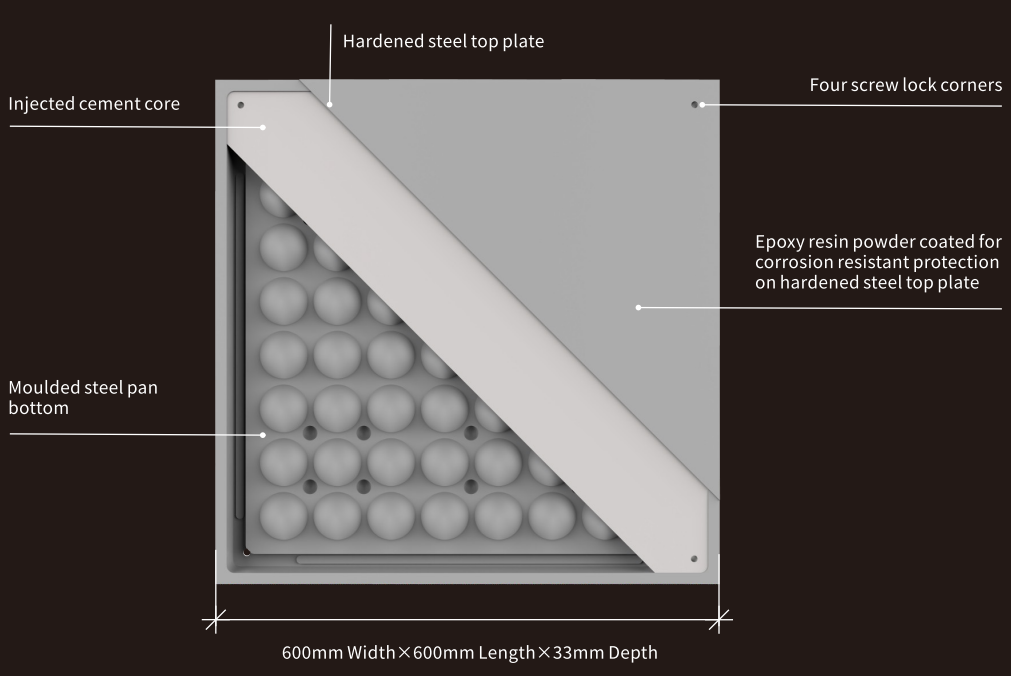 SC800面板采用精密模具成型,表面覆盖光滑环氧防腐涂层,面板平整度高、板缝均匀一致。裸面交付后,为后续各功能区域铺设地毯、PVC、瓷砖等不同面层材料提供了理想的基层条件,确保面层铺装后整体效果平整美观。