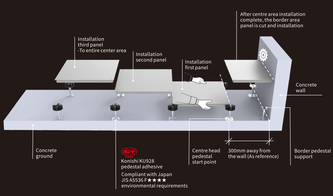 施工过程纪实 · 35,000㎡超大规模架空地板铺装的标准化实施