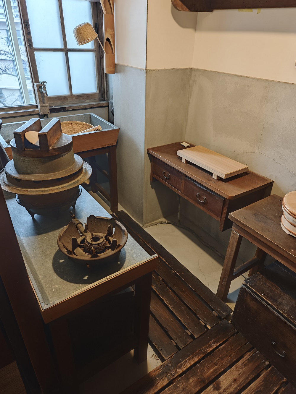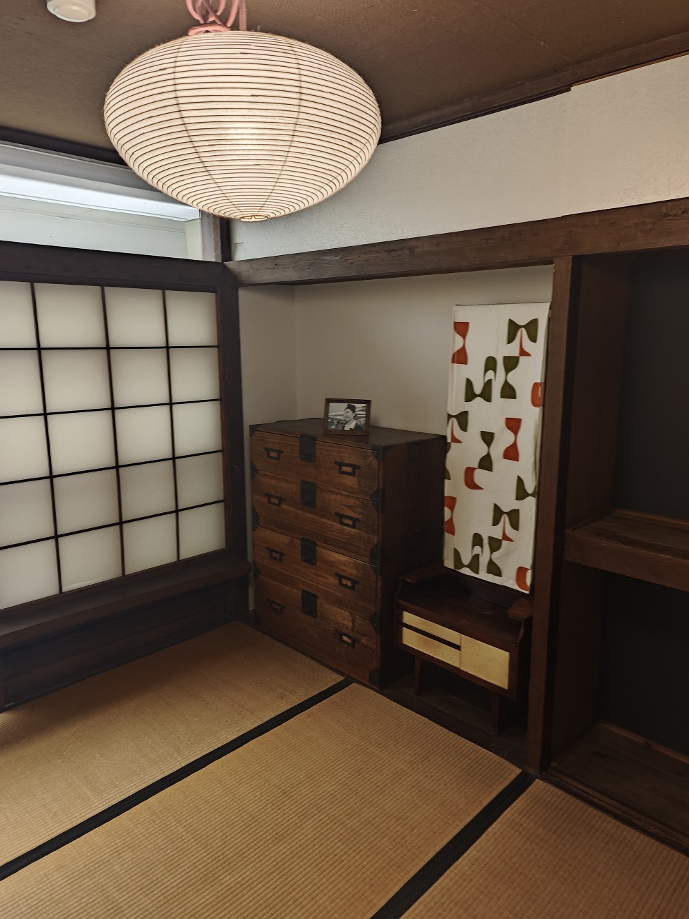 在复原展区中,团队还注意到许多体现日本居住文化的空间细节:和室的押入れ(壁橱)是小户型实现”一室多用”的关键收纳空间;床の間(壁龛)在面积极为有限的住宅中仍然被保留,用于悬挂书画,体现了对精神空间的坚守;障子(纸拉门)将室外光线柔化后引入室内,营造含蓄温暖的空间氛围。这些设计无一不在传递着同一个信息:即便在空间极度有限的时代,日本人对生活品质的追求也从未放弃。