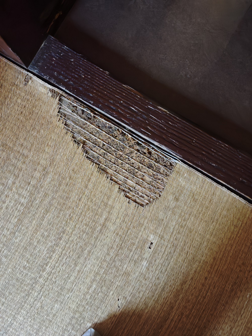 蔺草表层在高频踩踏区域的加速磨损,直观呈现了传统地面材料的老化规律与耐久极限, 这些正是现代地面系统设计中必须考量的核心问题。从传统榻榻米的天然纤维,到今天高性能复合地板材料的工程化设计,正是对这类”时间检验”反复研究与改进的结果。